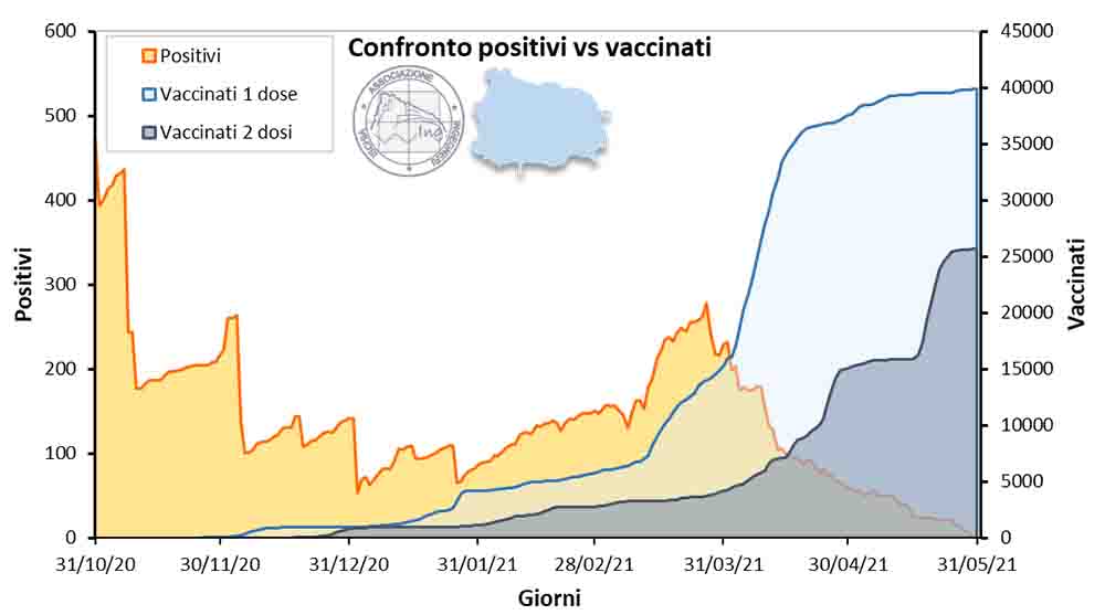 La rapida decrescita forse è imputabile alla campagna vaccinale di massa partita di fatto agli inizi di marzo ed esplosa verso la fine di aprile, la cui reale efficacia si potrà di fatto misurare con certezza verso gli inizi di ottobre 2021 quando forse, come rilevato lo scorso anno, la stagionalità dell’epidemia renderà più aggressiva l’epidemia.
