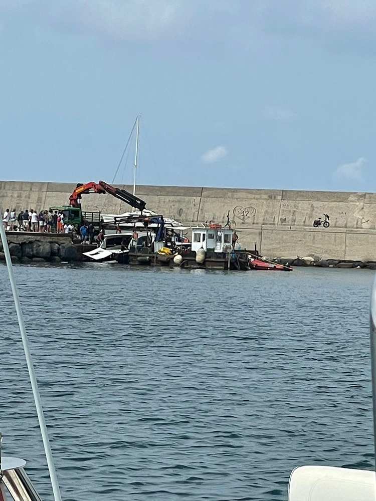 Subito si è aperta una falla e non c’è nulla da fare per salvare il natante. Questa mattina, con la presenza di una motovedetta della Guardia Costiera, l’hanno tirato su grazie all’ausilio di palloni galleggianti della ditta di Vittorio Guarracino, dopodiché l’hanno trainato vicino alla banchina di emergenza nel porto di Forio e con la gru della ditta di Luigi Morgera, l’hanno tirata a secco.