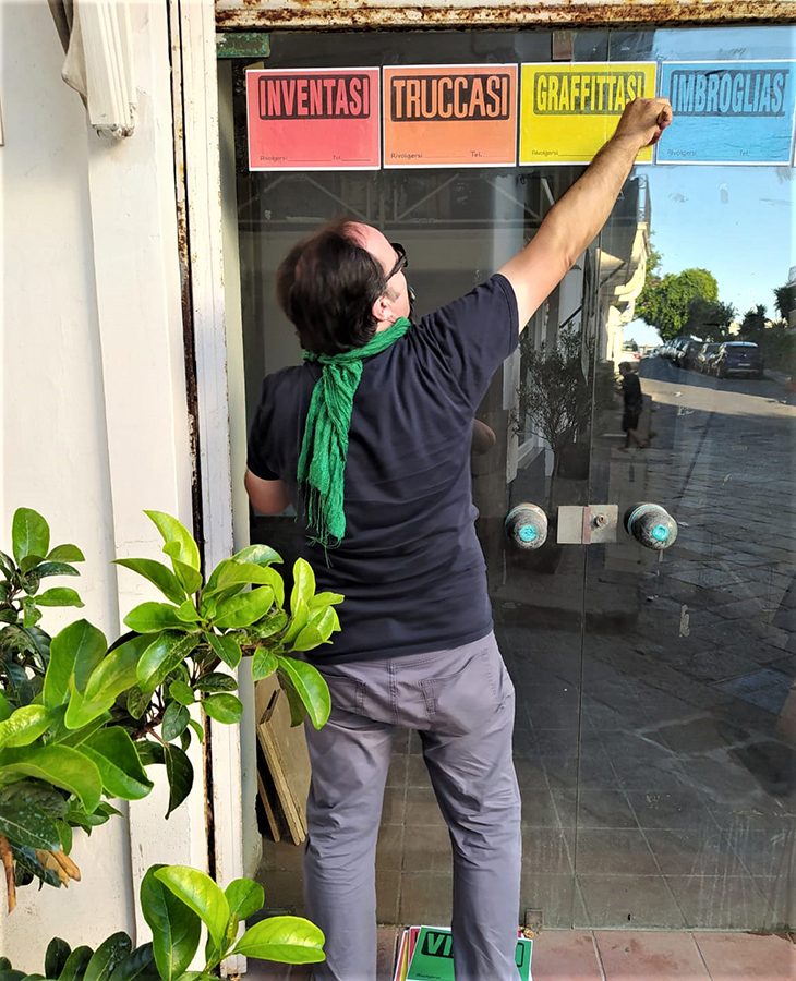 Lunedì 30 agosto a Forio in via San Francesco (strada che conduce alla chiesetta del Soccorso) il gallerista e attivista Salvatore Iacono, con una social performance, ha installato sulla vetrata esterna di un locale momentaneamente chiuso, un grande collage dell’artista milanese Carlo Cecaro alias Cartellomania. Il collage/installazione interattivo dal titolo #Performasi è stato strutturato e disposto artisticamente dallo stesso gallerista di Ischia Street Art. L’installazione è formata da cartelli provocatori (20×30 cm) assemblati in maniera da comporre un vero e proprio collage sul quale tutti possono intervenire scrivendo all’interno dei cartelli un proprio testo.