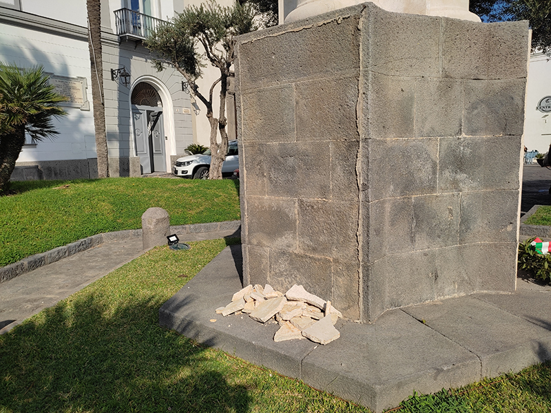 Una passeggiata ai giardinetti del vecchio Municipio e noti una cosa incredibile, si resta a bocca aperta, un cavo di alimentazione del faretto per illuminare il monumento ai caduti è fuori traccia.