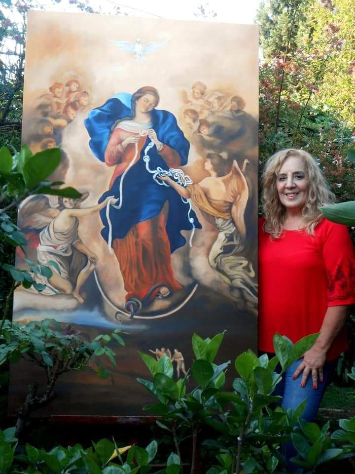 I nodi del rosario, infatti, sono l’icona della fede cristiana e della riflessione, dell’amore della Vergine verso il genere umano, un amore incondizionato che supporta e sostiene. Nodi che per simbologia la Vergine custodisce e scioglie. Proprio come nei quadri esposti in tanti luoghi sacri in giro per il mondo, quadri che sono stati anche riprodotti dalla bravissima Monica Lujan Collet, che Vicente Schiano ha contattato, e che ha realizzato un bellissimo quadro su commissione.