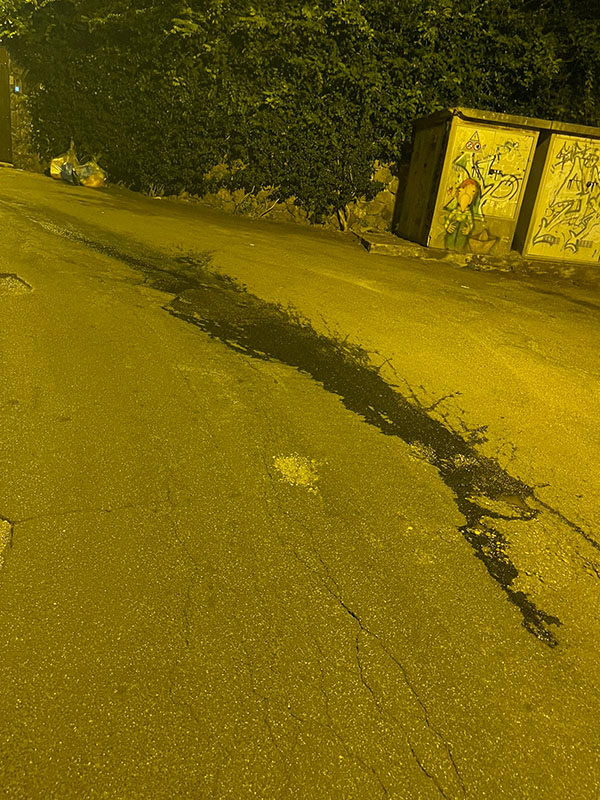 Una lunga e maleodorante scia sull’asfalto nella zona delle grandi ville del comune di Forio, una denuncia fatta anche con un audio dove prevale il disgusto e soprattutto la pericolosità di quella via.