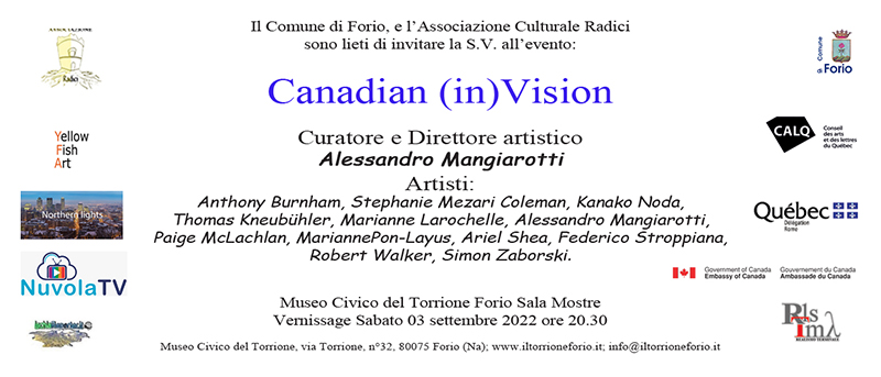 L’Associazione Culturale Radici, ringraziando, di concerto con il Comune di Forio e con il M° Alessandro Mangiarotti, i graditi ospiti settembrini e gli affezionati residenti, che vorranno liberamente intervenire, sempre rispettando le vigenti normative sanitarie, augura a tutti buon Canadian(in)Vision e informa che la mostra si replicherà successivamente, dal 24 settembre al 16 ottobre 2022 al Centro d’Arte Magazzino Muse, di Ancona.