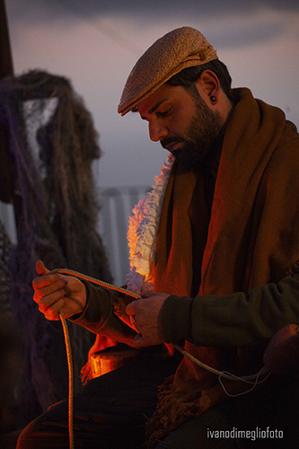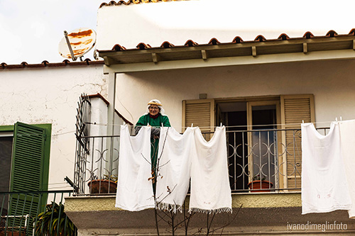A ‘rattalana intenta a “grattare” la lana da riutilizzare per materassi e cuscini. Anche lo scrivente, da bambino, dipanava le matasse di lana con la nonna, ma manualmente e in piccole quantità; compito che ci toccava durante il periodo estivo. L’ingresso nella piazzetta somiglia molto all’ingresso nel Medioevo di Benigni e Troisi. Il novecento (e non solo) si propone in modo vigoroso e toccante.