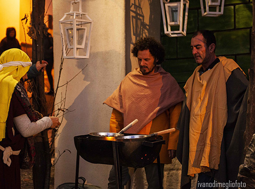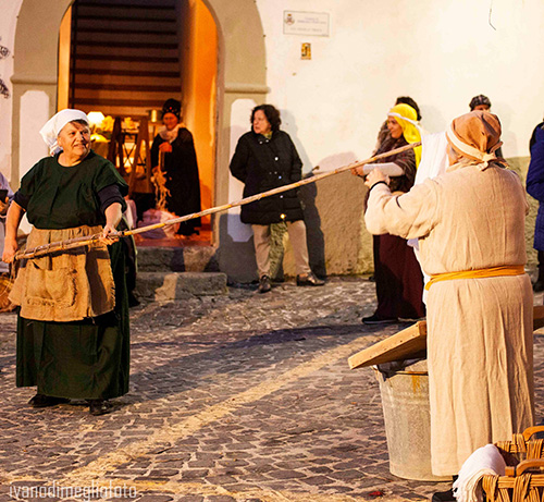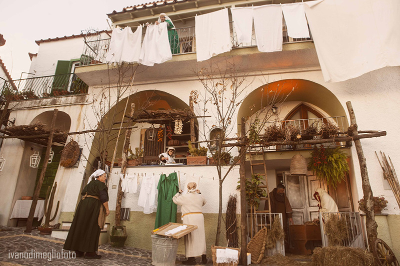 L’abitato romano si allargava sui terrazzi a vigneti che vanno oltre il Fundus S.Andrea, fino ad affacciarsi sul dorsale dell’attuale st 270. (Don Pietro Monti: Ischia, Archeologia e Storia). Il Presepe e la rievocazione in abiti tradizionali del ‘900, colpisce lo spettatore per diversi motivi. Il principale è quello di un tuffo nel passato, in mestieri e figure ormai scomparse nella moderna società globalizzata. La lavandaia con “la pietra di sapone” e il lavaturo, mi ricordano molto le abitudini dei miei avi, nonne in primis. Il braciere (‘u ‘raciere) e ‘u ‘sciuttapanni posto al di sopra per asciugare gli abiti spesso logori e consunti dal tempo, ma comunque rabberciati per resistere ancora alle insidie del tempo che scorreva e scorre.