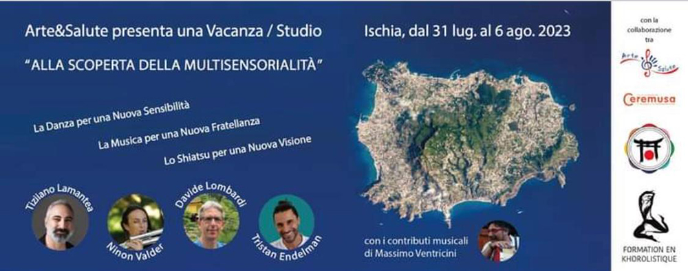 Tiziano Lamantea operatore Shiatsu,ricercatore e fondatore di “Arte&Salute”, a breve sbarcherà ad Ischia, accompagnato dai suoi “contributor” che lo affiancheranno in questo suggestivo soggiorno, Davide Lombardi, Tristan Edelman, Ninon Valder, Massimo Ventricini.
