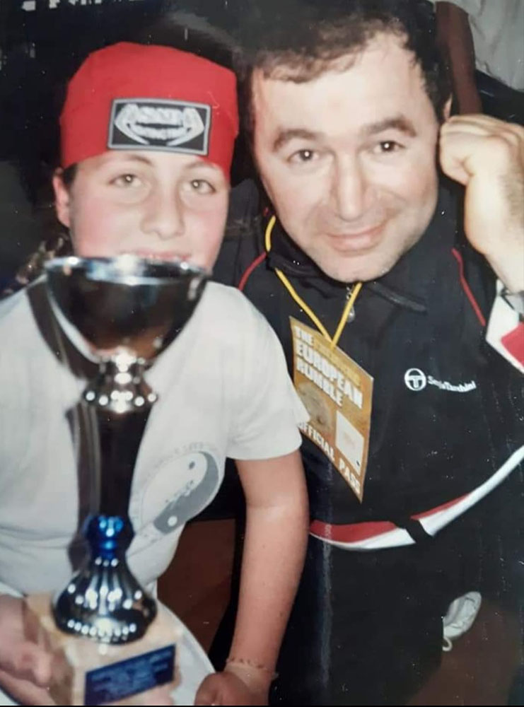 “La memoria corre nel passato. Eravamo negli anni 70 e giocavo a calcio, ma ero affascinato dal Karate, dal mito che il più debole potesse sconfiggere il più forte, finche’ un giorno nell’ assistere alla proiezione di un film di Bruce Lee, dove calci e pugni, parate e contrattacchi erano portati con destrezza e velocità rimasi incantato da cotanta maestria. Non ero ancora consapevole ma quello fu il primo passo sulla strada di una grande passione che ancora oggi porto nel cuore. Desideroso di apprendere, in assenza di internet, social, palestre e quant’altro cominciai a leggere libri e riviste specializzate. Il destino volle che all’ epoca lavorando come bagnino all’Hotel Splendid, oggi Eden Park, conobbi il campione di judo della Baviera, il quale mi avviò alla pratica marziale. La gioia di scoprire ed imparare, ricordo mi spingevano di mattina presto diverse ore prima che iniziasse la giornata lavorativa a seguire i suoi allenamenti. Mi regalò un libro con tanto di dedica firmata datata 25 settembre 1979 che talvolta risveglia nostalgici ricordi di gioventù. Poi partì, ma ormai questa passione mi era entrata nel sangue fino a diventare la mia vita. Allora sull’Isola di marzialmente serio non c’era nulla, nè tantomeno una palestra. Conobbi il maestro Pasquale Dragon Di Costanzo, pioniere delle arti marziali ad Ischia, nel 1981 ne divenni allievo nella prima palestra ischitana in via delle Terme ad Ischia (San Ciro). Memorabili le nostre esibizioni nelle varie discoteche isolane (Area di Forio, Charly e Ciao Mare di Ischia), nelle piazze isolane, nel Cinema delle Vittorie in occasione di eventi e manifestazioni, senza contare le innumerevoli apparizioni televisive nei programmi sportivi delle allora TV private Telelacco Europa TV, Telestella del Golfo, Teleischia. Ovunque strappavamo applausi e consensi. Era un’epoca pionieristica, un pugno di amici cercava di divulgare le arti marziali ad Ischia. Un gruppo storico nel quale la crema degli attuali maestri isolani Di Costanzo, Patalano, Di Paola, Giorgio Lauro arrivato dal Canada, Franco Migliaccio muoveva i suoi primi passi, oggi tutti affermati professionisti nelle loro discipline. Durante il servizio militare mi allenai con il Maestro Baldiotti a La Spezia. Successivamente la voglia smisurata di apprendere, conoscere, perfezionarmi, mi portò ad allenarmi a Napoli dal Maestro Gianni Di Bernardo, attuale Presidente regionale Federkombat. Furono anni di intensi sacrifici dove dovetti conciliare il lavoro di guardiano notturno al Grand Hotel Regina Isabella con le lezioni impartitemi di mattina. Consegui le qualifiche di Allenatore, Istruttore, fino a diventare Maestro. Nel 1997 insegnai alla palestra Oxygen a Lacco Ameno. Nel 1998 realizzai il sogno della mia vita con la fondazione dell’asd Bruce Lee’s Fighting Method, una società sportiva che trasmette gli antichi valori educativi delle arti marziali e che nel corso degli anni ha raggiunto risultati sportivi mai conseguiti finora da alcuna società sportiva isolana”.