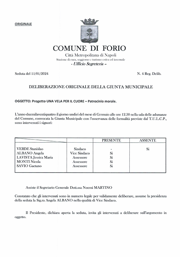 IL PRESIDENTE DEL CONSIGLIO COMUNALE DI FORIO GIOVANNI MATTERA CHIARISCE LA VICENDA DEL PROGETTO “UNA VELA PER IL CUORE”
