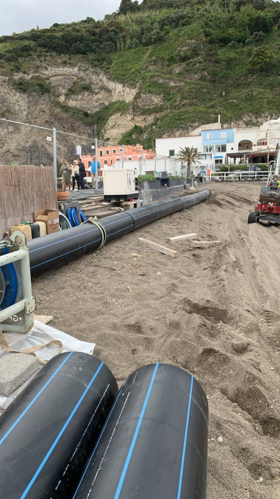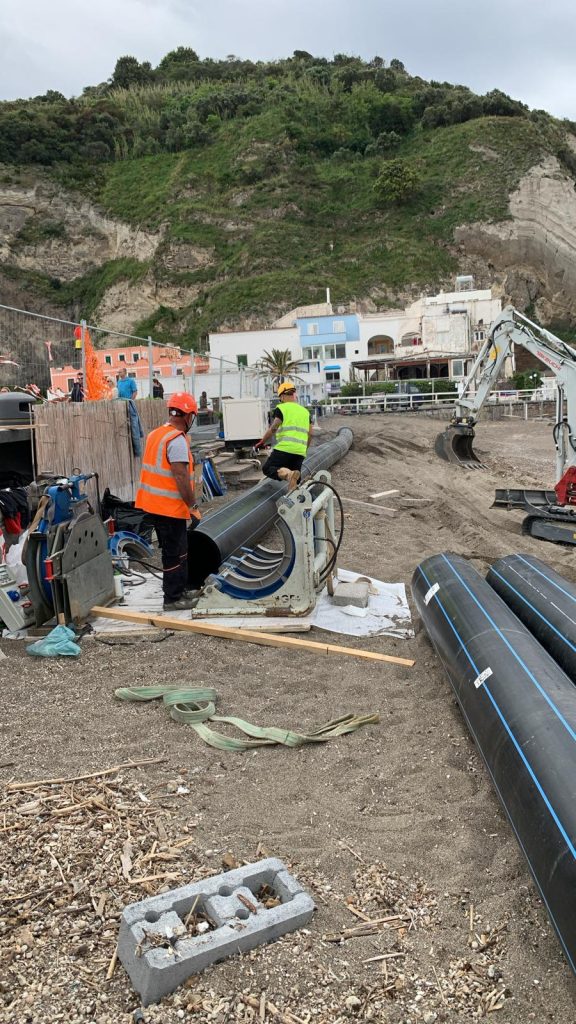 Ufficialmente iniziati il 6 maggio 2024 con l’apertura del cantiere, fervono i lavori per la riparazione della condotta fognaria sottomarina di S. Angelo.