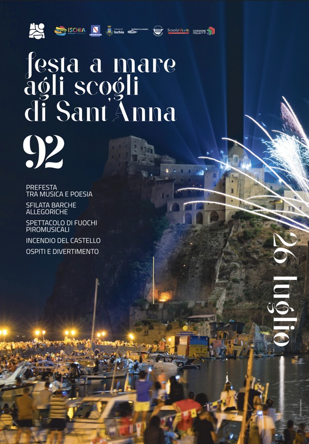 La tradizionale processione delle partorienti verso il tempietto dedicato a Sant’Anna, la sfilata delle quattro barche allegoriche galleggianti in concorso, l’inserimento di un premio social che coinvolge influencer selezionati e il pubblico del web, la partecipazione dei giovani studenti isolani con il “progetto Scuola Viva”, l’esibizione della giovane talentuosa artista Marta Viola, lo show cooking con il Guest Chef Bruno Barbieri, l’emozionante spettacolo dell’incendio del Castello Aragonese sulle note dell’ormai rituale brano Blue Dolphin, lo spettacolo piromusicale, la gara di canoa in tandem ai piedi del Castello Aragonese seguita dall’esibizione della cantante Marilena Costagliola il 24 luglio con “Verso Sant’Anna” e, infine, l’attenzione alla tutela ambientale con “Operazione Sant’Anna” a cura dell’AMP Regno di Nettuno che coinvolgerà le associazioni del territorio.