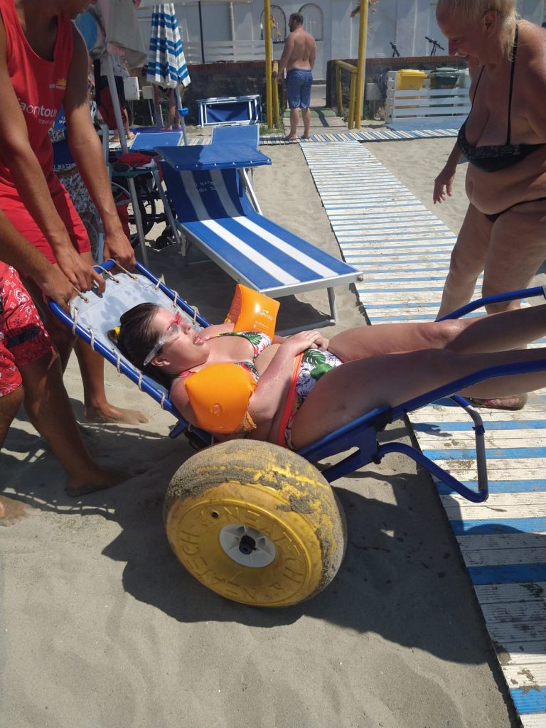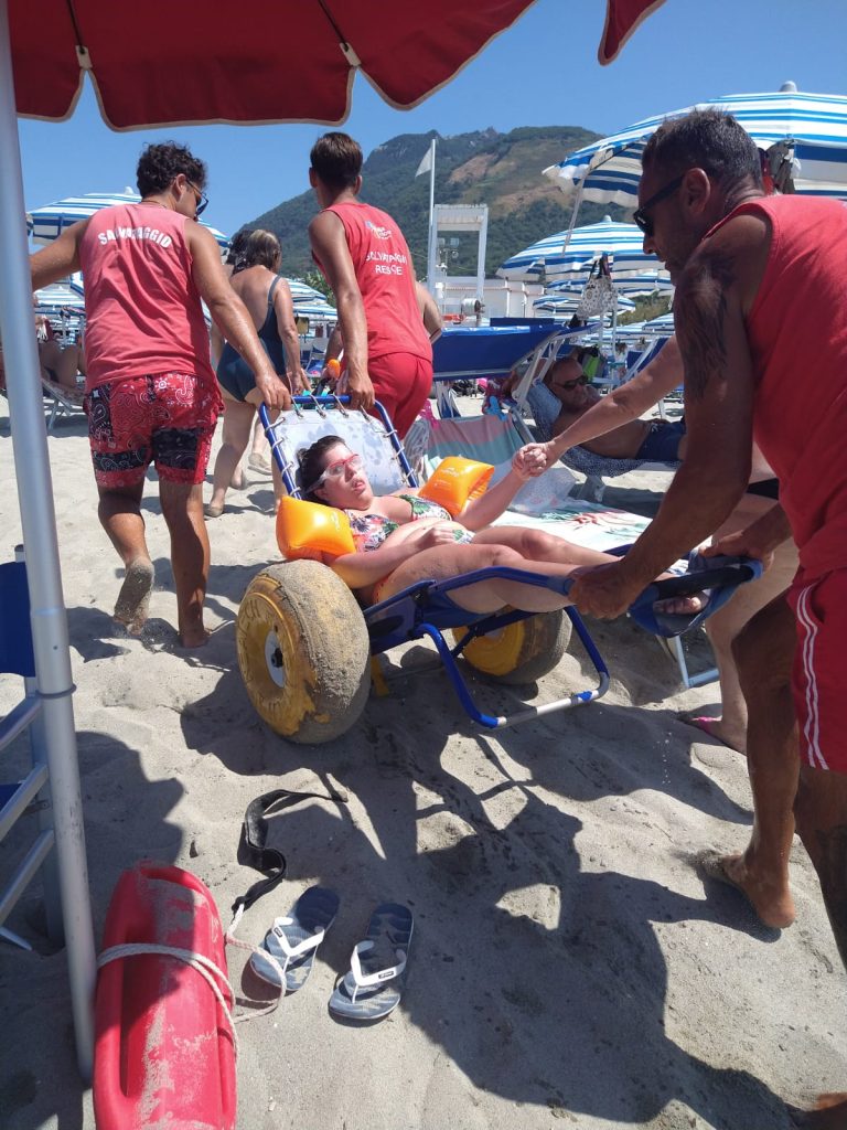 “Il capitano Mattera – dice Renata – è una persona squisita. Ha mantenuto la sua promessa di accoglierci sul suo lido. Alessandra, è disabile al 100% e non deambula. Ogni giorno quando veniamo in spiaggia il personale è immediatamente a disposizione, l’aiutano a scendere sull’arenile e ci accompagnano in acqua e viceversa. Sono dei veri e propri angeli”.