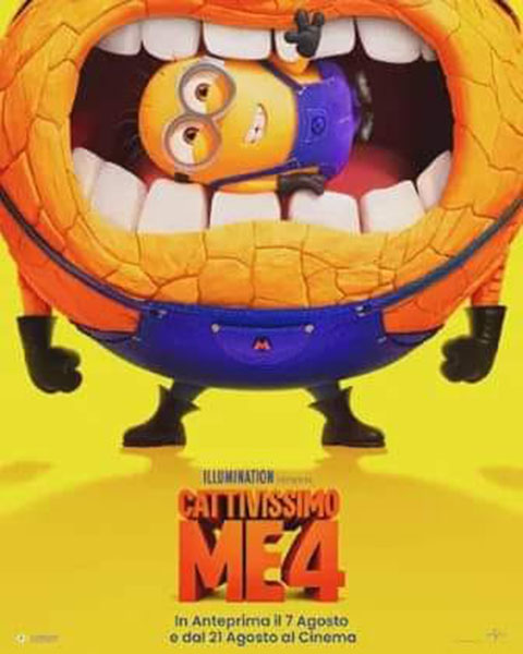Da Mercoledì 21 Agosto con spettacoli alle ore 19:00 e 21:00, sarà proiettato il cartoon più atteso dell’anno: Cattivissimo Me 4.