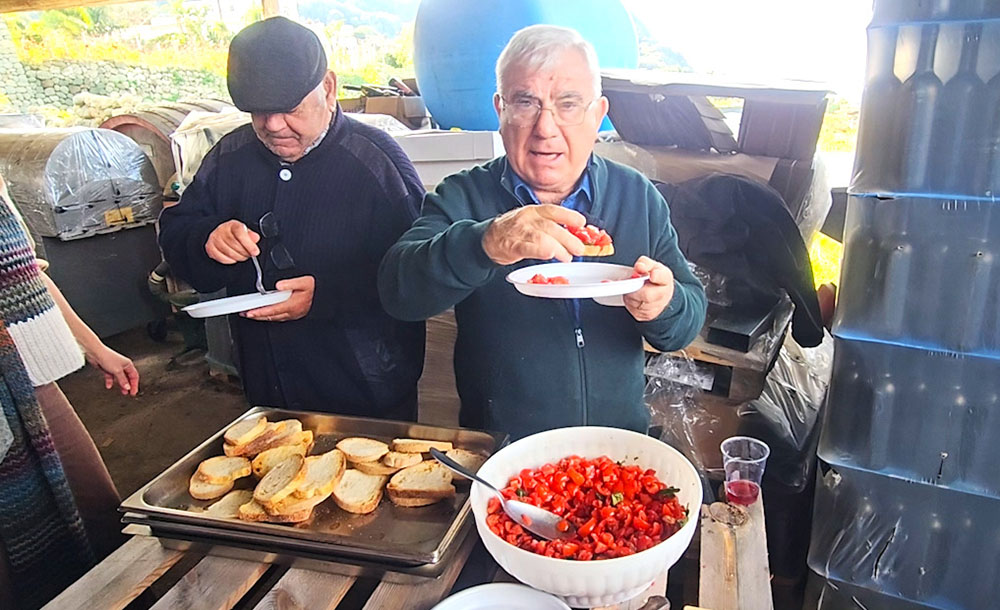 Sull’isola d’Ischia, presso le cantine di Pietratorcia a Forio, si è conclusa con il classico brindisi di tutti i convenuti la tradizionale festa del vino nuovo. Sospesa durante gli anni della pandemia da Covid-19, quest’anno in tantissimi si sono ritrovati per trascorrere nuovamente insieme un momento conviviale e di socializzazione. Tra antiche cantine e vecchie botti di legno incastonate in un contesto naturalistico a dir poco straordinario, oltre all’assaggio del vino appena prodotto, i presenti hanno potuto degustare le pietanze della tradizione contadina locale tra cui la bruschetta, sapientemente preparata da Franco Iacono.