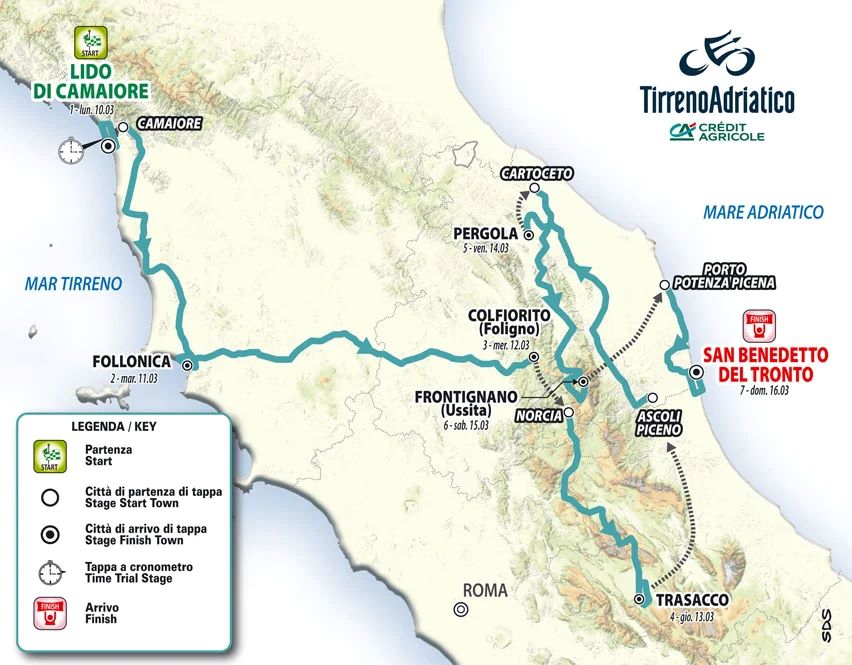 IL PERCORSO DELLA 60^ TIRRENO-ADRIATICO CRÉDIT AGRICOLE