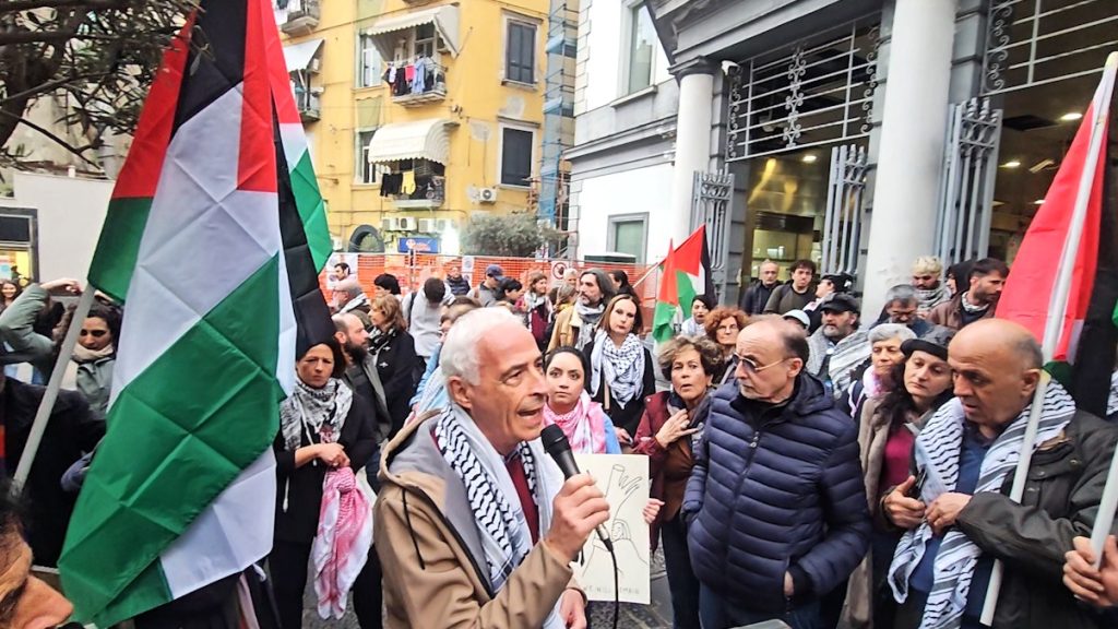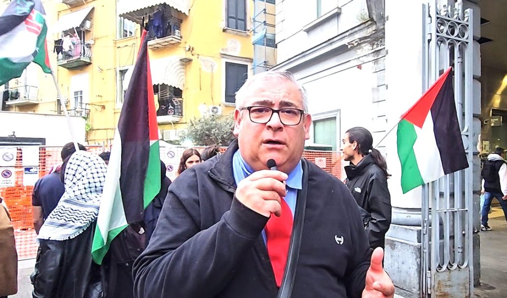 La stazione della Cumana di Montesanto, sabato scorso teatro dell’aggressione razziale consumatasi ai danni del regista teatrale palestinese Omar Suleiman e di altri attivisti della Comunità Palestinese a Napoli, per ore è stata presidiata da centinaia di persone giunte nel centro storico della città partenopea per solidarizzare con gli aggrediti e condannare con forza il continuo massacro e genocidio che da decenni il popolo palestinese è costretto a subire.
