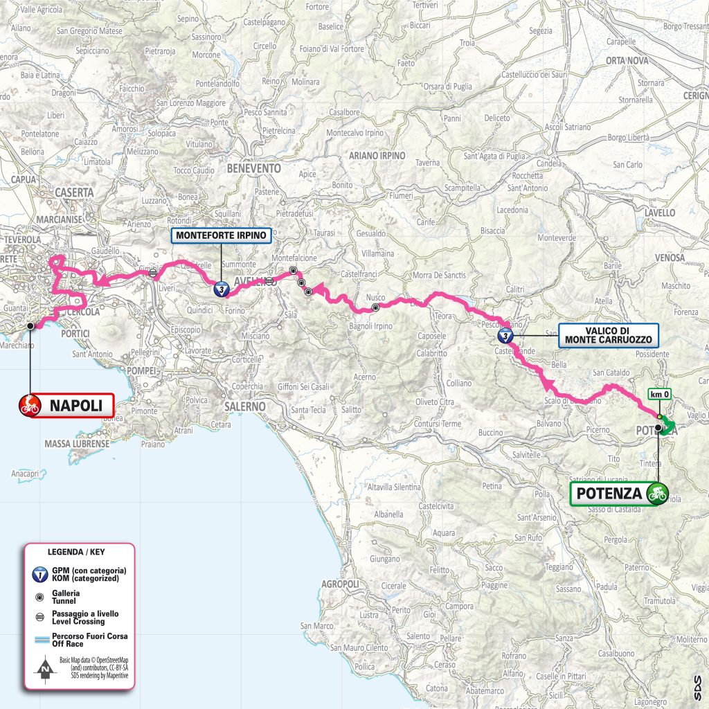 Sono entrati nel vivo, infatti, gli interventi di manutenzione, effettuati dalla Città Metropolitana di Napoli, alle arterie che saranno attraversate dalla Corsa rosa nella frazione che collegherà il capoluogo lucano con quello campano (il quarto arrivo consecutivo nella città di Partenope), coprendo la distanza di 226 km, la più lunga di tutta la 108ª edizione della Corsa rosa.
