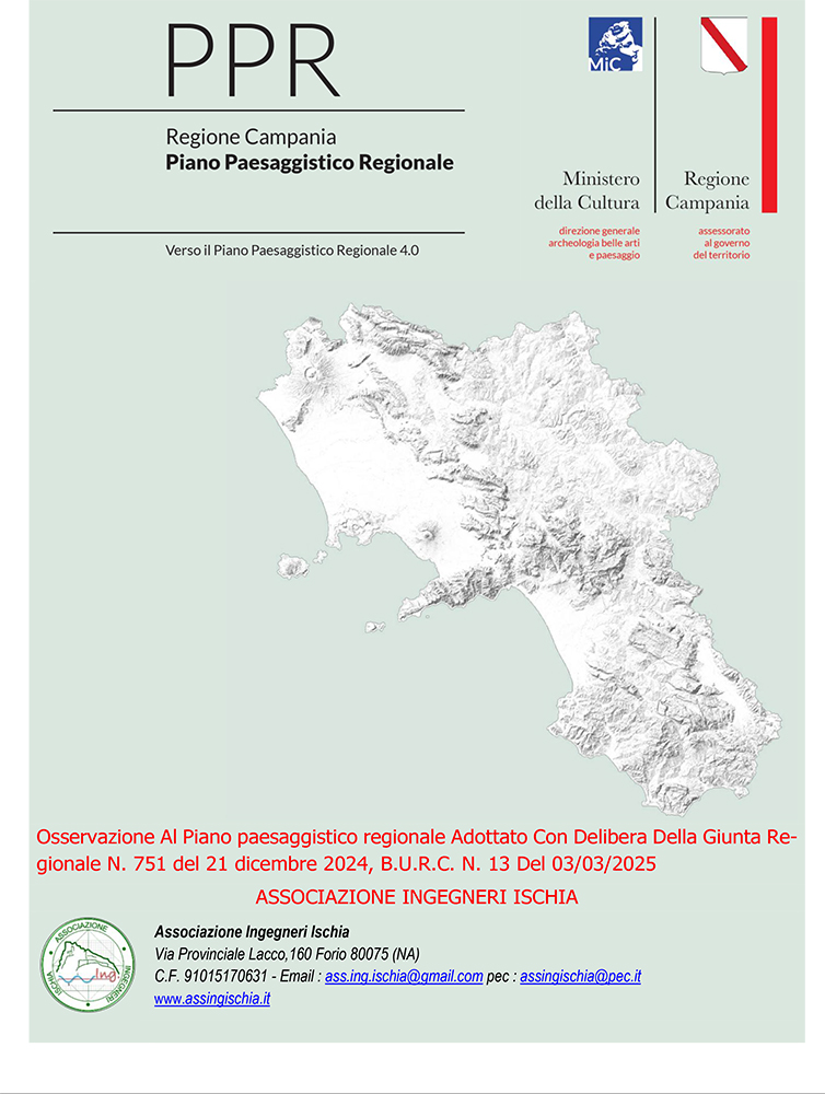In sintesi, l’Associazione Ingegneri Isola d’Ischia propone una serie di osservazioni che mirano ad un Piano Paesaggistico che sia, insieme, rigoroso nella tutela e flessibile nell’attuazione; ambizioso nelle strategie e semplice nelle procedure; innovativo nell’uso delle tecnologie e inclusivo nel coinvolgimento della popolazione. Solo integrando questi elementi sarà possibile trasformare le salvaguardie normative in azioni concrete, incisive e durature, capaci di valorizzare l’identità isolana e di preparare Ischia alle sfide del ventunesimo secolo.