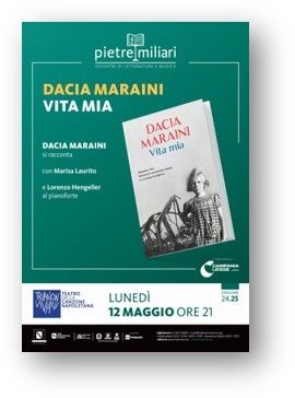 Si inizia lunedì 12 maggio, con Dacia Maraini che chiude Pietre miliari, il ciclo di incontri di letteratura e musica organizzato in collaborazione con il Premio Napoli. La grande scrittrice si racconta con il suo romanzo autobiografico “Vita mia”. Con lei sul palco, la stessa Laurito e l’accompagnamento musicale di Lorenzo Hengeller al pianoforte.