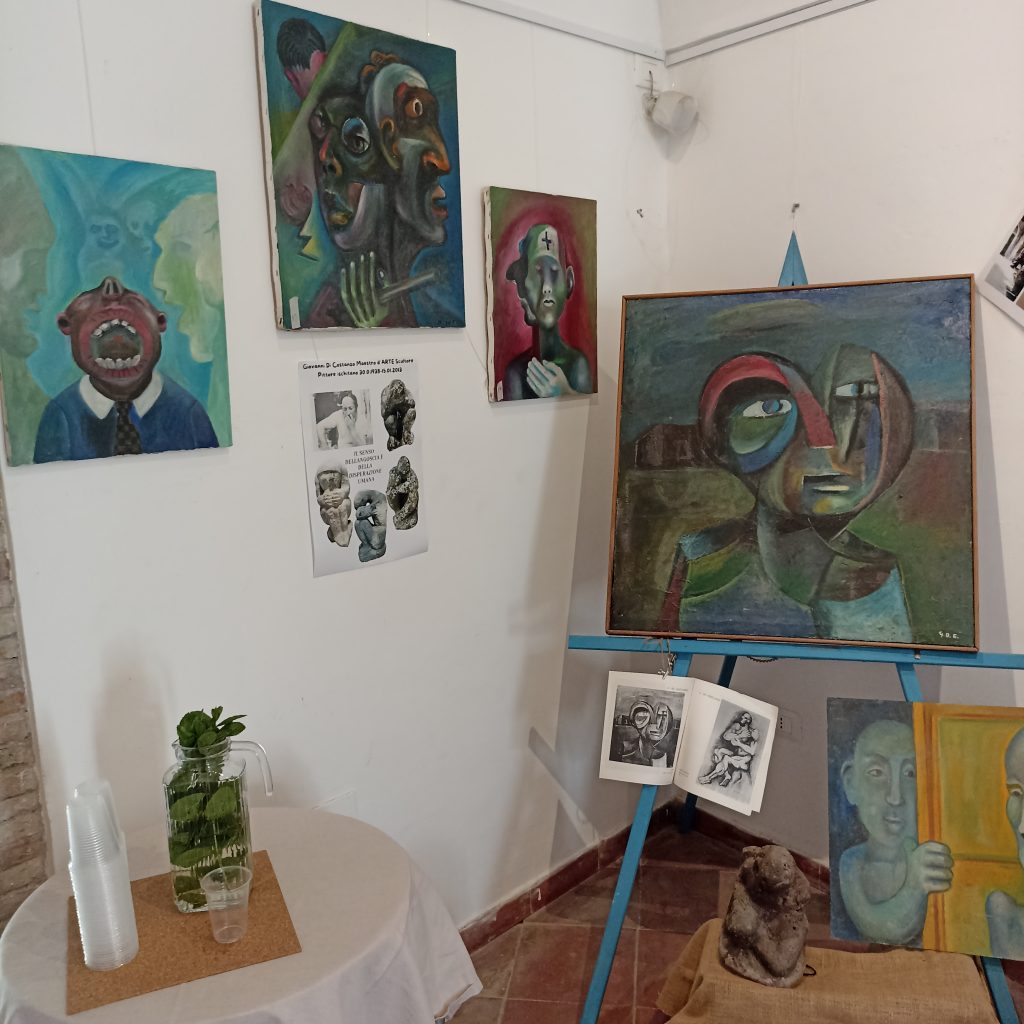Buonopane protagonista alla torre del Molino con l’omaggio al compianto professore Giovanni Di Costanzo. Scultore, pittore, artista poliedrico e silenzioso, nasce a Buonopane il 30 ottobre 1938 da una famiglia di contadini. Manifesta già da ragazzo le sue spiccate doti artistiche, fino a convincere i genitori a iscriverlo alla scuola di Belle Arti di Napoli. Vince numerosi premi, tra cui quelli Olivetti nel 1962, il tifeo d’argento, la medaglia d’oro alla terza rassegna nazionale di pittura e scultura Aldo Moro sul tema “sì alla vita”. Incontro subito la curatrice della mostra, Patrizia Di Costanzo, nipote del professore, anche lei pittrice e artista. Le chiedo quanto segue: da dove parte la passione e la necessità di raccontare Giovanni Di Costanzo? “Sono nipote d’artista e, in passato, prima della pittura, il mio estro si manifestava sotto altre forme, come il cucito. Alla morte di mio zio, mettendo in ordine il suo grande e caotico archivio d’opere, ho avvertito un risveglio; la consapevolezza di dover dare ordine e visibilità all’immenso atelier che mi si poneva dinanzi gli occhi. Per far questo, sono partita dalla sua Buonopane. Il terreno è il bene che ha dato nutrimento a lui e a tantissime generazioni della sua epoca”. Su cosa poni l’attenzione? “Sicuramente, avendo mio zio vissuto nell’epoca della materialismo edilizio, ho fissato il punctum sul lato spirituale dell’artista, cosa che caratterizzava il suo semplice stile di vita”. La prima fase della sua vita artistica, si caratterizza da opere che hanno un forte richiamo materno. I materiali usati vanno dalla pietra al legno, dal piombo al ferro. Anche questa scelta riflette la semplicità, la spontaneità dell’artista, il quale raccoglieva pietre lungo le strade della Contrada natale. Il naturalismo ispirato dalla sua terra, si combina a tratti che sono fortemente influenzati dal cubismo, dall’impressionismo, dall’astrattismo. La costante evoluzione della sua tecnica, quanto dell’oggetto, si palesa agli occhi del visitatore. Sperimentazione continua che lo porta, al termine la sua vita, a modellare soggetti e oggetti dalle cromie e dalle forme non canoniche. Le teste scolpite, la visione della prospettiva, della natura e degli animali in contesti nudi e crudi, rappresentano una esternalizzazione del complesso mondo interiore, fragile e umano che fanno di Giovanni Di Costanzo un artista ancora da scoprire.