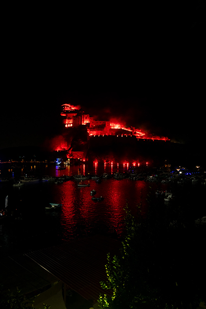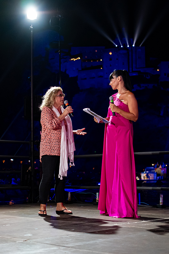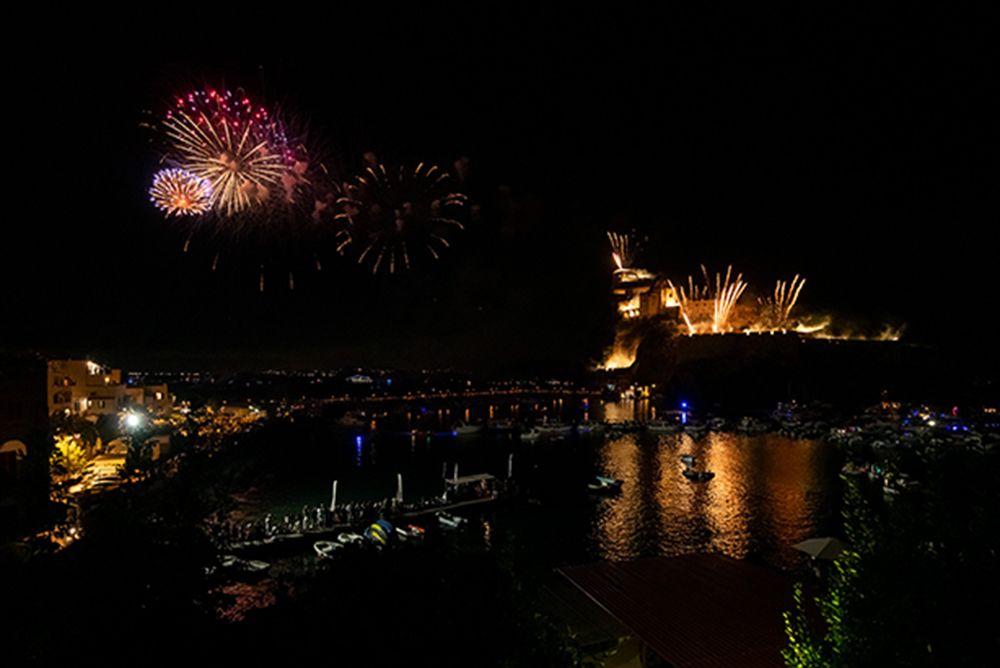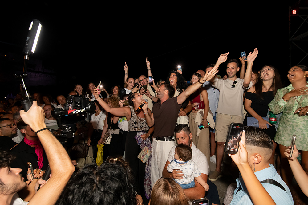 A suggellare una serata già carica di suggestioni e bellezza, è stata la spettacolare simulazione dell’incendio del Castello Aragonese, un momento scenografico di grande impatto che ha trasformato la baia in un palcoscenico di luce e stupore. Le mura antiche, avvolte da giochi di fuoco e fumo, hanno rievocato epoche lontane, mentre la musica scandiva ogni esplosione con ritmo e intensità.