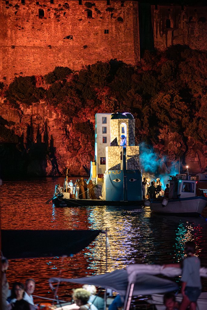 Si è chiusa ad Ischia Ponte, sotto un cielo di stelle e riflessi colorati sul mare, la 93esima edizione della Festa a Mare agli Scogli di Sant’Anna, l’appuntamento più atteso e amato dell’estate ischitana. Un rito collettivo che ogni anno rinnova il legame profondo tra il mare, la tradizione e l’anima dell’isola. E quest’anno, più che mai, la festa ha saputo parlare al cuore con la partecipazione delle quattro opere d’arte che hanno letteralmente danzato sull’acqua raccontando con musiche, narrazioni, balli e canti, storie e ricordi.