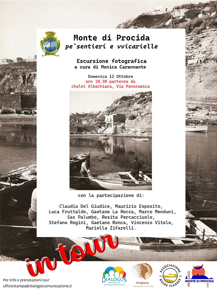 Domani domenica 12 ottobre (partenza alle ore 10 nei pressi dello Chalet Albachiara in via Panoramica) si terrà l’iniziativa con protagonisti undici fotografi accompagnati da Monica Carannante, guida turistica. Monte di Procida “Pe’ sentieri e vvicarielle” ha l’obiettivo di valorizzare il paesaggio, la storia e le tradizioni della cittadina montese. Alcuni scatti saranno selezionati per una mostra fotografica dedicata alla valorizzazione e promozione del territorio dei Campi Flegrei.
