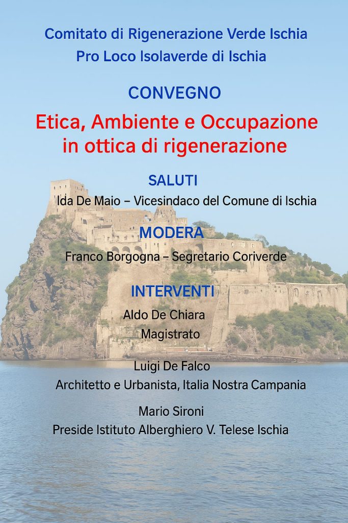 E Bruno Discepolo, Assessore Regionale all’Urbanistica, pur non avendo potuto accogliere l’osservazione al Piano di Ricostruzione di CO.RI.VERDE che propone di istituire il Parco dell’Epomeo, ha scritto, nella risposta all’osservazione, che “pur non essendo la sede giusta per formalizzare tale progetto, esso è comunque auspicabile” rinviando la palla ai Comuni isolani e alla società civile ischitana. E lo stesso vale per il Commissario Straordinario Legnini, molto favorevole alla proposta ma esorbitante dai suoi poteri. Sabato 18 ottobre, alle 10,30, presso l’Istituto Alberghiero di Ischia, CO.RI.VERDE e PRO LOCO ISOLAVERDE ISCHIA organizzano un Convegno dal titolo “ETICA,AMBIENTE E OCCUPAZIONE IN OTTICA DI RIGENERAZIONE” che vedrà impegnati il Magistrato Aldo De Chiara, ben noto agli isolani, che già anni fa avvertiva sui pericoli e la compromissione del territorio perpetrata dall’abusivismo edilizio, e l’arch. Urbanista Luigi De Falco, esponente illustre di Italia Nostra campana, come del resto lo stesso De Chiara.