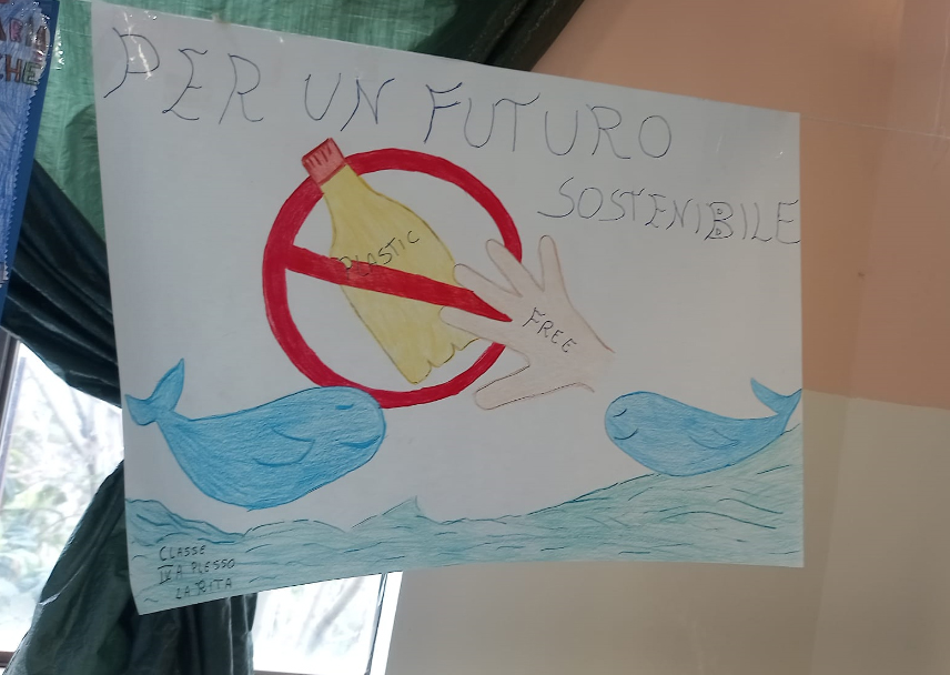 È stata una gioia aver potuto vedere dei bellissimi cartelloni raffiguranti il Mondo dei bambini senza la plastica, è come se avessero dato a noi una lezione sull’ambiente.