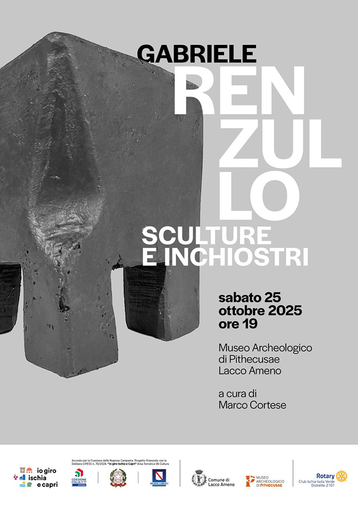 «L’idea di questa esposizione – spiega l’architetto e designer Marco Cortese, curatore della mostra con Massimo Ielasi – nasce dalla sollecitazione del Rotary Club Ischia a organizzare un appuntamento culturale da realizzare in un contesto carico di arte e storia. La scelta del museo Pithecusae mi è parsa inevitabile: in primo luogo, per la sua importanza e le sue enormi potenzialità, e perché dimostra come l’arte contemporanea, tridimensionale, possa non solo coesistere con l’archeologia ma anche arricchirla di nuovi segni e significati. L’arte essenziale, rigorosa, quasi severa di Renzullo, che sottende in realtà un mondo interiore e una vitalità di pensiero molto ricca e complessa, ci permette di riscoprire il grande patrimonio artistico e archeologico del Museo Pithecusae da una prospettiva inedita e con uno sguardo rinnovato».